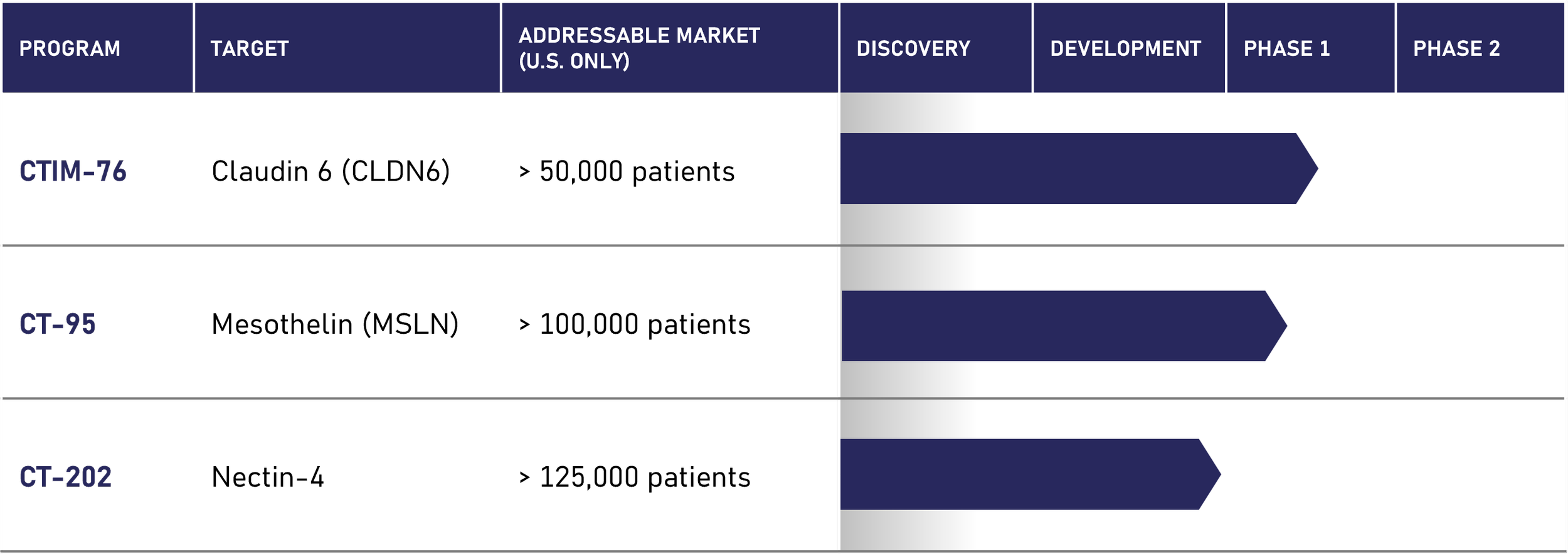 CTIM-76 is a bispecific antibody that incorporates a highly selective CLDN6 binding arm and a CD3 binding scFv domain in an IgG format with a silenced Fc that is designed to be functionally monovalent to avoid aberrant T-cell activation and to enhance the safety profile. Research has demonstrated that CTIM-76 is potent with specific lysis of CLDN6+ cancer cells over normal cells and can activate cytotoxic T cells without concomitant activation of free cytokines – critical determinants of immunotherapy safety and activity.