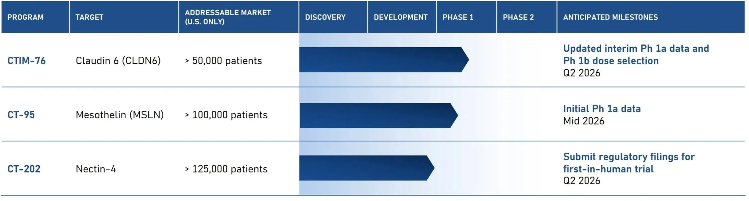 CT-95 is a bispecific antibody featuring two moderate-affinity mesothelin binding arms and two CD3 single-chain Fv domains in a monovalent IgG format with a silenced Fc, designed to enhance safety by preventing aberrant T-cell activation. Its membrane-proximal and cooperative binding to mesothelin ensures high selectivity and stable engagement with tumor cells, while minimizing off-target effects from shed mesothelin. CT-95 delivers potent, tumor-specific lysis and cytotoxic T cell activation without triggering excessive free cytokines, supporting a highly targeted and safer immunotherapeutic approach.
